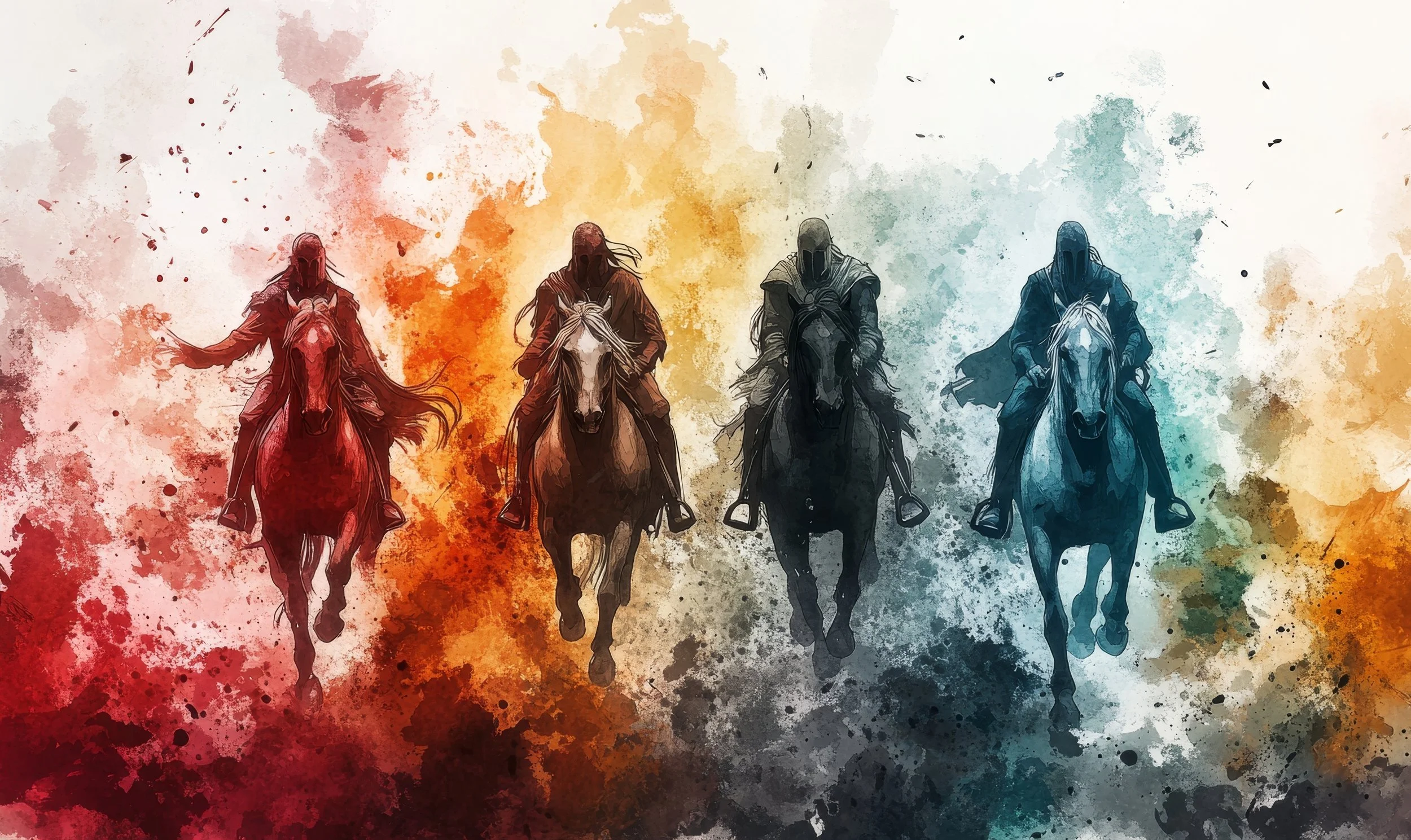 The first four seals introduce four riders, often called the Four Horsemen of the Apocalypse. Echoing Zechariah 6:1-8, each horse and rider brings a different form of judgment to the earth. These are the only seals that begin with a command from one of the living creatures: “Come!” or “Go forth!”